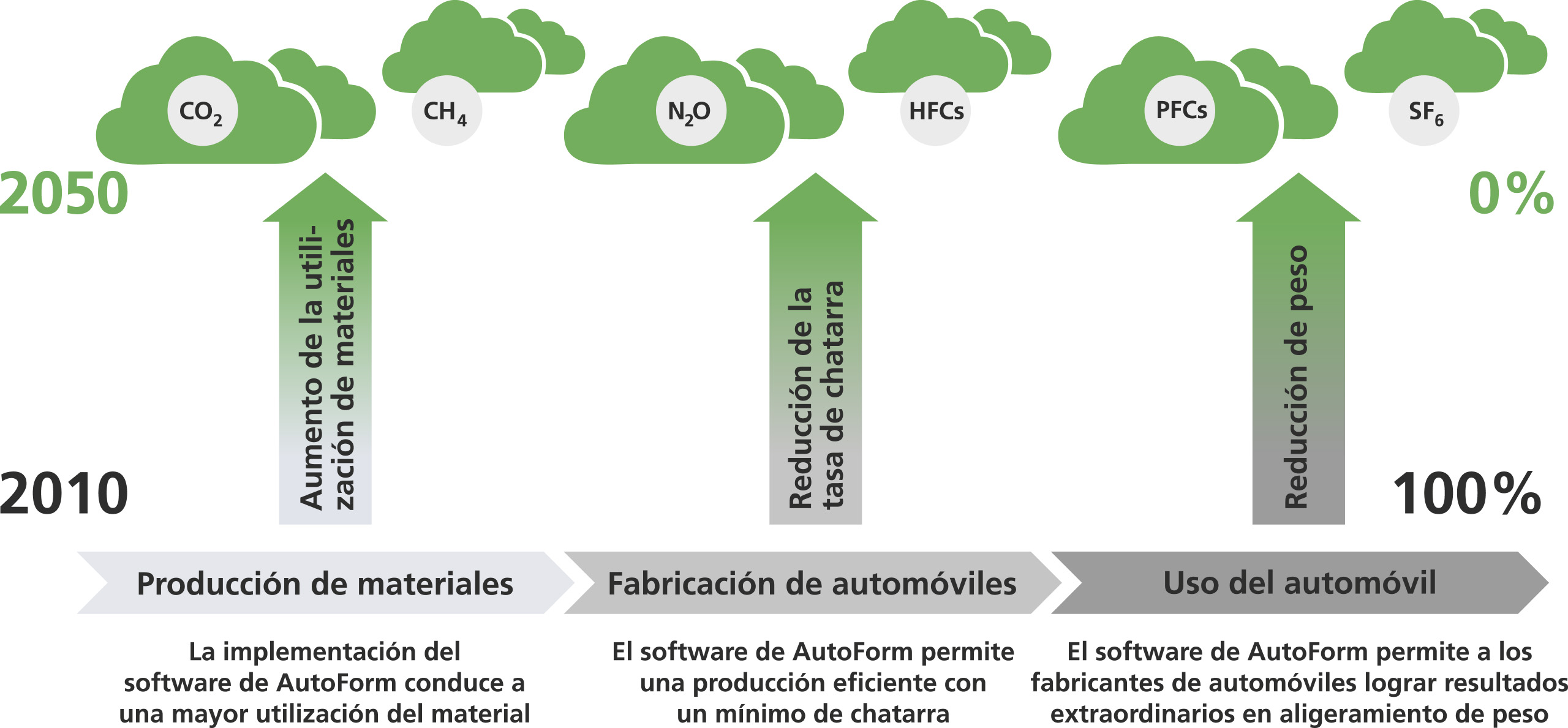 En AutoForm estamos comprometidos en proporcionar a nuestros clientes soluciones de software que les ayuden a resolver sus principales retos de ingeniería en conformado de chapa metálica y ensamblaje BiW. Al utilizar el software de AutoForm está contribuyendo activamente a una producción sostenible y a un entorno más ecológico. El software de AutoForm puede ayudar a su empresa a alcanzar los objetivos de reducción de CO2.