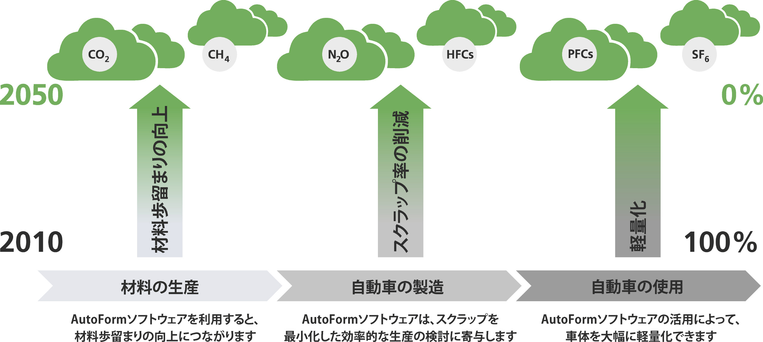 AutoFormソフトウェアの導入によって、ホワイトボディ生産の効率化と同時にCO2排出量の削減目標も達成することが可能になります。