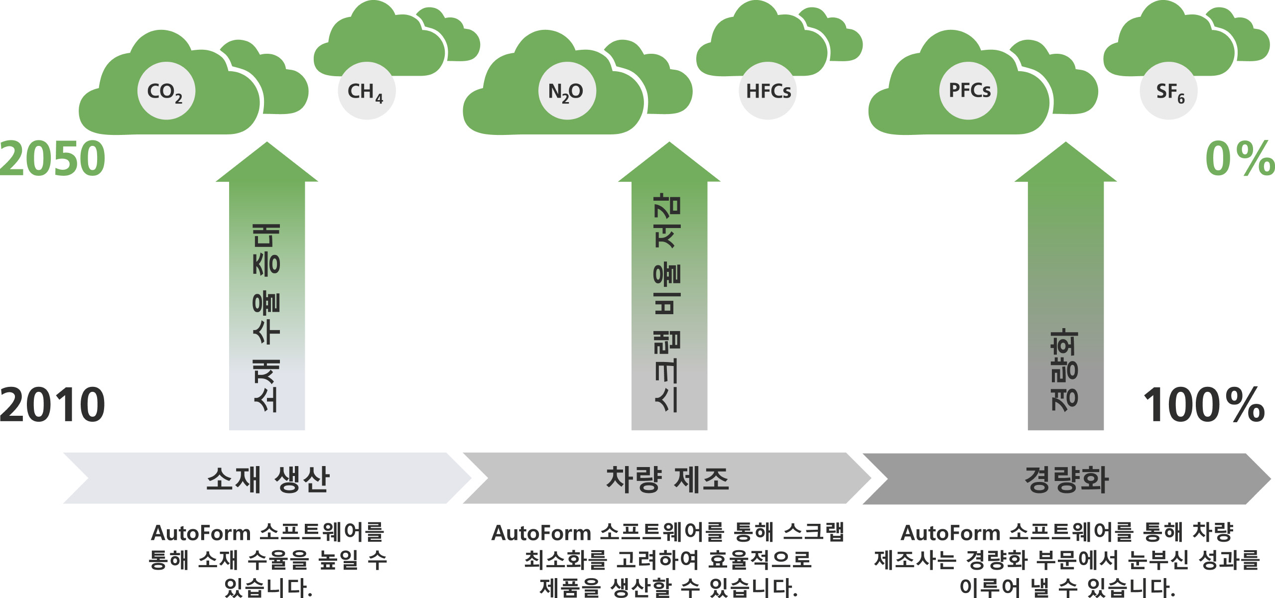 AutoForm 소프트웨어를 통해 귀사에서는 알루미늄과 철강 생산 과정에서 발생되는 CO2 배출량 저감에 적극적으로 공헌할 수 있습니다.